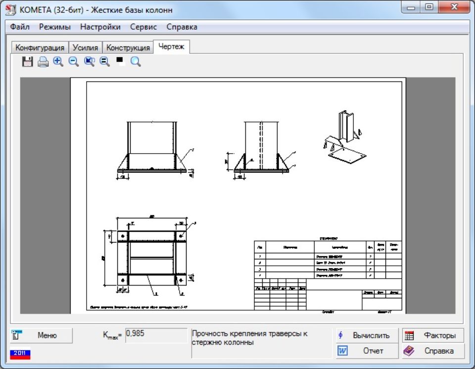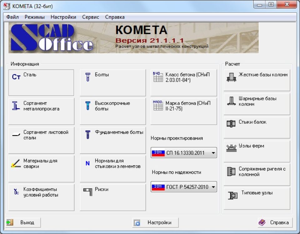 Основная задача инструмента КОМЕТА— расчёт, проектирование и выставление экспертной оценки соединительных элементов металлических конструкций. Программа работает с большинством популярных узлов, которые используются как в промышленном, так и в гражданском строительстве. В расчёт необходимо ввести известные показатели нагрузки, программа проверит посредством расчётного инструмента или определит их автоматически. Помимо расчётных функций, программа имеет большую библиотеку справочной информации, а также выполняет дополнительные операции для смежной деятельности в проектировании.