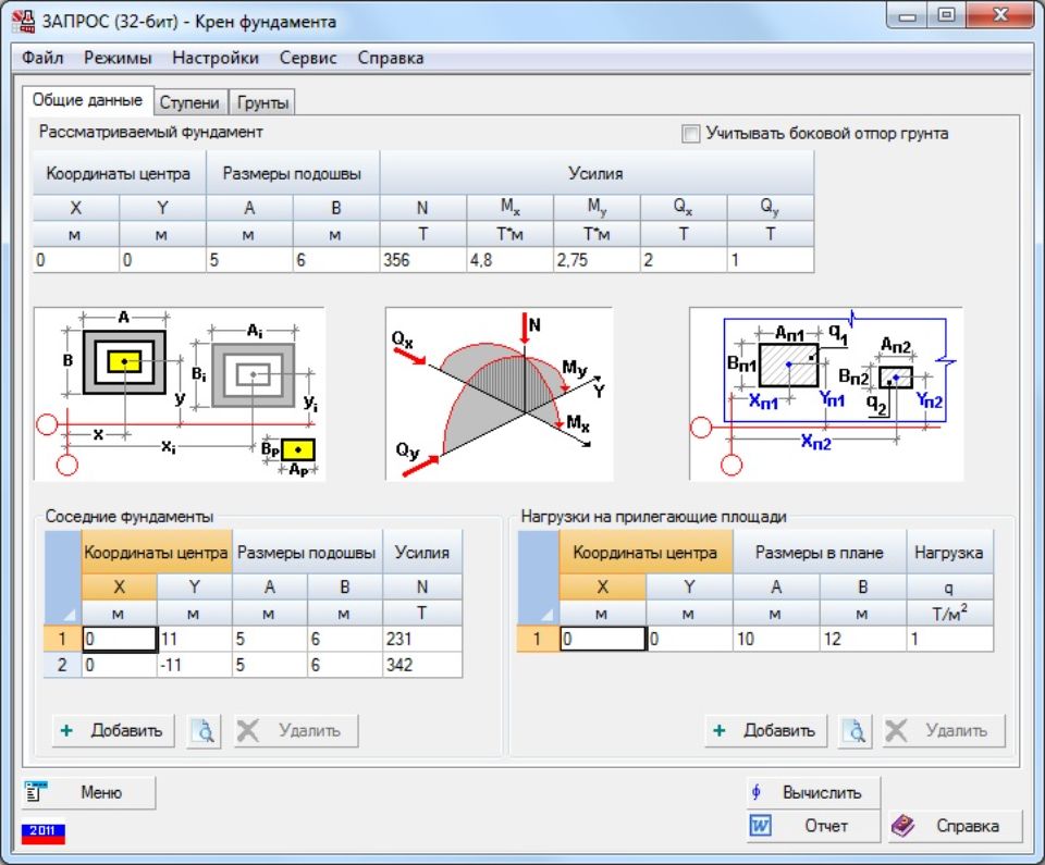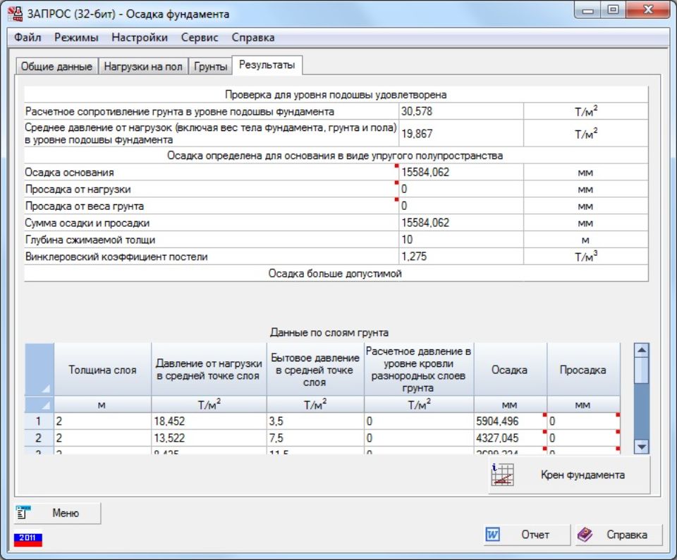 В программном продукте ЗАПРОС предусмотрен справочный режим, где вы можете просмотреть пределы относительной разности крена, осадок для сооружений разного вида. Здесь же представлены данные о расчётных сопротивлениях различного типа грунтов, о характеристиках грунтов в СП, СНиП, ДБН, о коэффициентах рабочих условий.