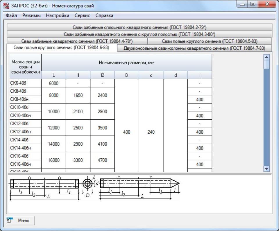 • Раздел свай. Здесь активны два информационных режима — это номенклатура и коэффициенты условий работы свайных конструкций. В этом разделе вы можете определять несущие способности свай по вертикальным нагрузкам, рассчитывать коэффициенты запаса стойкости основания, предельного изгиба и поперечной силы в сечении, выполнять другие задачи.